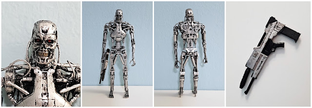 Egy korábbi írásomból megtudhattátok, hogy nagy Terminator rajongó vagyok, szóval mindig is vágytam rá, hogy egy T-800-as álljon őrt a polcomon. A minőségben azonban bőven akad pro és kontra egyaránt: A figura kb. 18,5 cm magas, műanyagból készült, a festés igazán élethű, fémes hatást kelt, összességében brutálisan szép és elképesztően részletes. Sajnos viszont mivel tényleg a legkisebb apróságokra is odafigyeltek, a sok kicsi mozgatható alkotóelem bizony nagyon törékeny. Olvastam olyat is, hogy valakinek már azzal sikerült kárt tennie benne, hogy megpróbálta kiszedni a dobozból. Azt tanácsolom, hogy használj ollót a kibontásnál, utána találj egy pozíciót, amiben megáll a figura, és kész, soha többet ne nyúlj hozzá. Az enyémnek, az egyik lapockája már így is önálló életet él, mert persze az is mozgatható, és ha hozzányúlok, a gravitáció hatására úgy működik, mint egy lengőajtó. Sajnos a hozzá kapott fegyver már ferdén került ki a dobozból, + a fent leírtak miatt amúgy sem akartam azzal pepecselni, hogy azzal együtt állítsam ki, mivel a figura amúgy sem túl jó egyensúlyát is felborítja. A negatívumok ellenére még így is azt mondom, hogy 9900 Ft-os áron ennél jobb T-800-ast nem fogsz kapni, tényleg nagyon szemrevaló darab.
